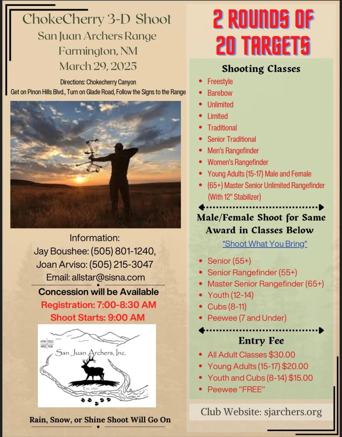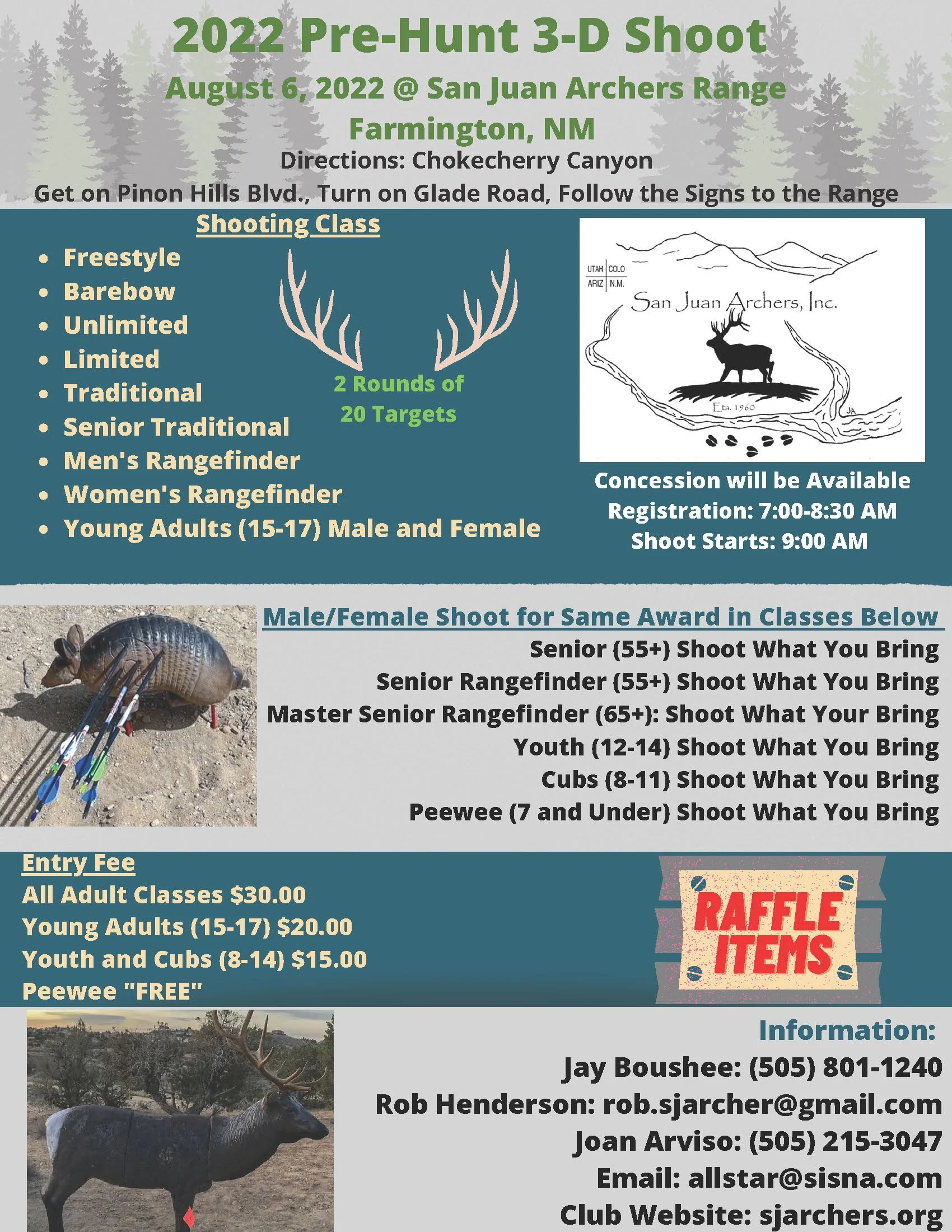 Come with your bow and shoot some targets. We will have ten 3D targets setup.